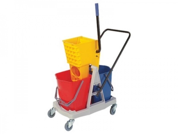 | Composição | PP e barra de metal Cor baldes: vermelho e azul; cor prensa: amarela |