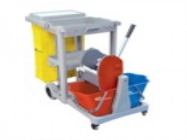 Exclusivo sistema de fixação para utilização de baldes espremedores para água limpa e suja, tornando-o único no mercado a ofereceresta possibilidade.