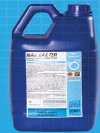 MAN BACTER é um alvejante líquido clorado, que proporciona alvejamento seguro para roupas com fibras de algodão, rami, linho