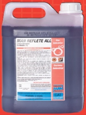 MAN REFLETE ALL é um produto para limpeza de alumínio com sujidades leves e pesadas. Tem uma detergência ativa com