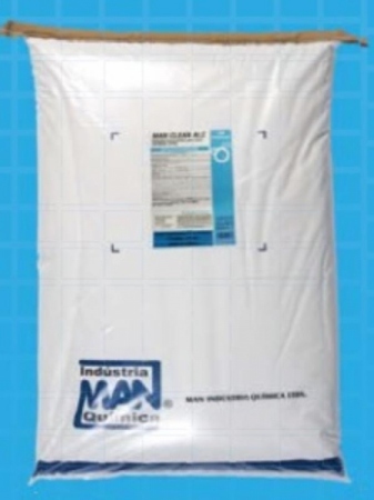 MAN CLEAN ALC um detergente em pó alcalino concentrado, de formulação balanceada usada na pré-lavagem e lavagem de